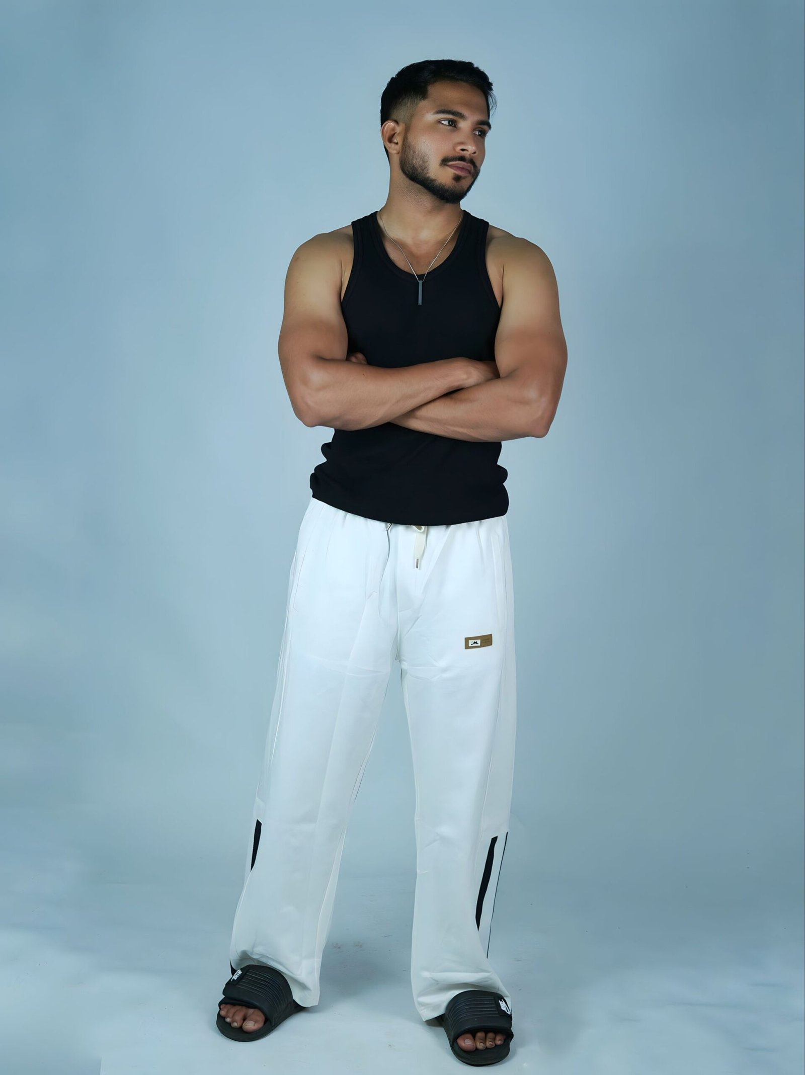 Stay stylish and comfortable with this premium white track pant. Made from soft and breathable fabric, it features: